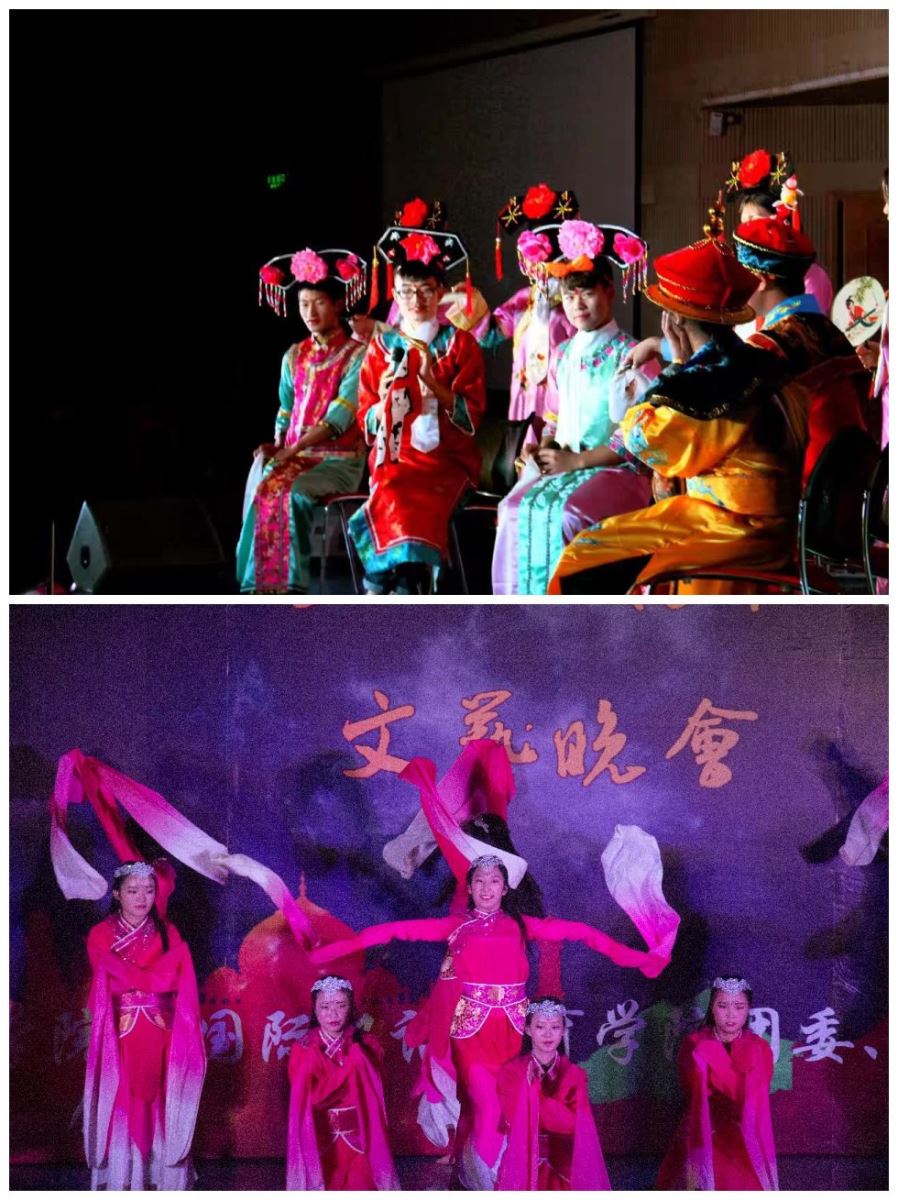 小品《甄嬛出宫计》一改原剧细腻华美的画风,加入了诙谐幽默的言辞,男女反串加以创新,惟妙惟肖的表演将晚会带人热潮。随着热烈的掌声,泰国、老挝留学生缓缓步入舞台,为我们纵情演绎了《泰国+老挝传统舞蹈》,随后IN街舞社的社员们带来引得全场欢呼的《跳西游》。我们的国粹京剧却也别有一番韵味,京剧社和汉服社带来的《京剧梨花颂》带着整齐划一的京剧唱腔,独具中华特色的服装,摇曳生姿的舞步掀起了晚会的小高潮。一只手鼓、一把吉他、两个人——节目《safe and sound》将两种不可思议的乐器结合在一起,配合女主唱优美空灵的歌声,全场观众都屏息倾听,安静的欣赏。随后舞蹈《玉生烟》将中华璞玉的纯美、坚忍、含蓄的情感清晰地表达出来,优美的舞姿配上悠扬的歌声,为观众们带来了一场精妙绝伦的视听盛宴,让观众沉醉其中。悠扬的古典音乐,蕴含了中国文化优柔,美好的内涵;说唱与歌曲的结合,现代与古典的融合,展现了我院在面向国际的同时,也不忘中华古典文化之美。